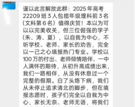 江西瑞昌市第一中學一場因老師建議三名學生報考清華、北大未果而“怒散群聊”的風波,雖經校方處理告一... 「詳細」